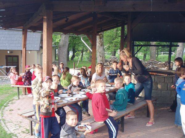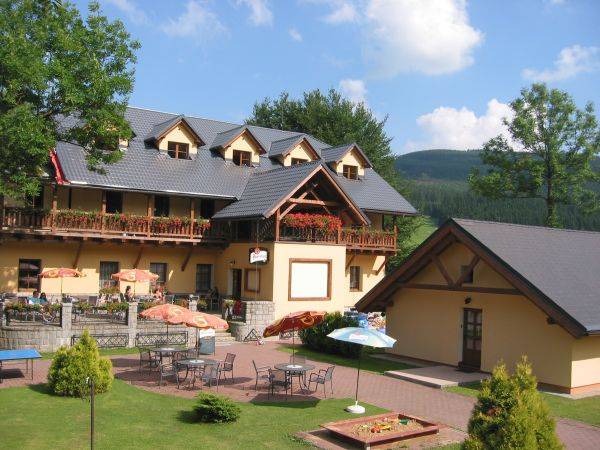 Noclegi w Ramzove, JesionikiWszystkie pokoje hotelowe są wyposażone w kompletny węzeł sanitarny. Na parterze znajduje się restauracja dla 50-ciu osób oraz jadalnia dla 60-ciu osób, których podstawowym zadaniem jest obsługa mieszkających w Hotelu naszych Szanownych Gości,. Dla rodziców z dziećmi, zbudowaliśmy piękny plac zabaw, który sąsiaduje z jadalnią, a zatem bardziej przyjemnego wypoczynku zarówno rodziców i dzieci. Wyżywienie: w restauracji z wybór tradycyjnych dań.