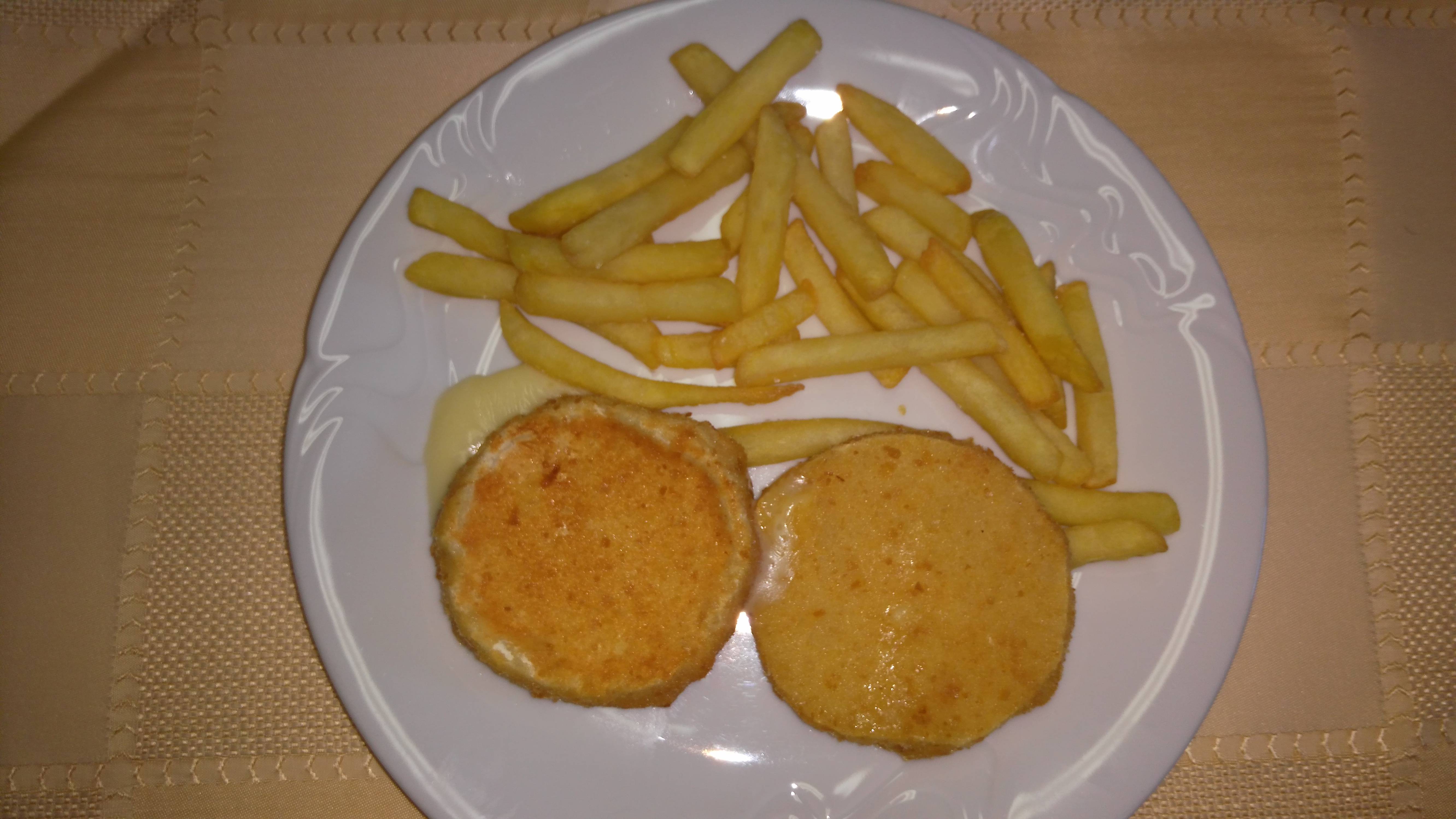 | Dania 165 4 ks bramboráčků posypané nakrájenou šunkou 50 g(1/2 sklenice) a sýrem 50 g(1/2 sklenice) a vše zapečené 165 4 ks bramboráčků proložené 60 g hermelínu nakrájený na 4 plátky a vše zapečené |