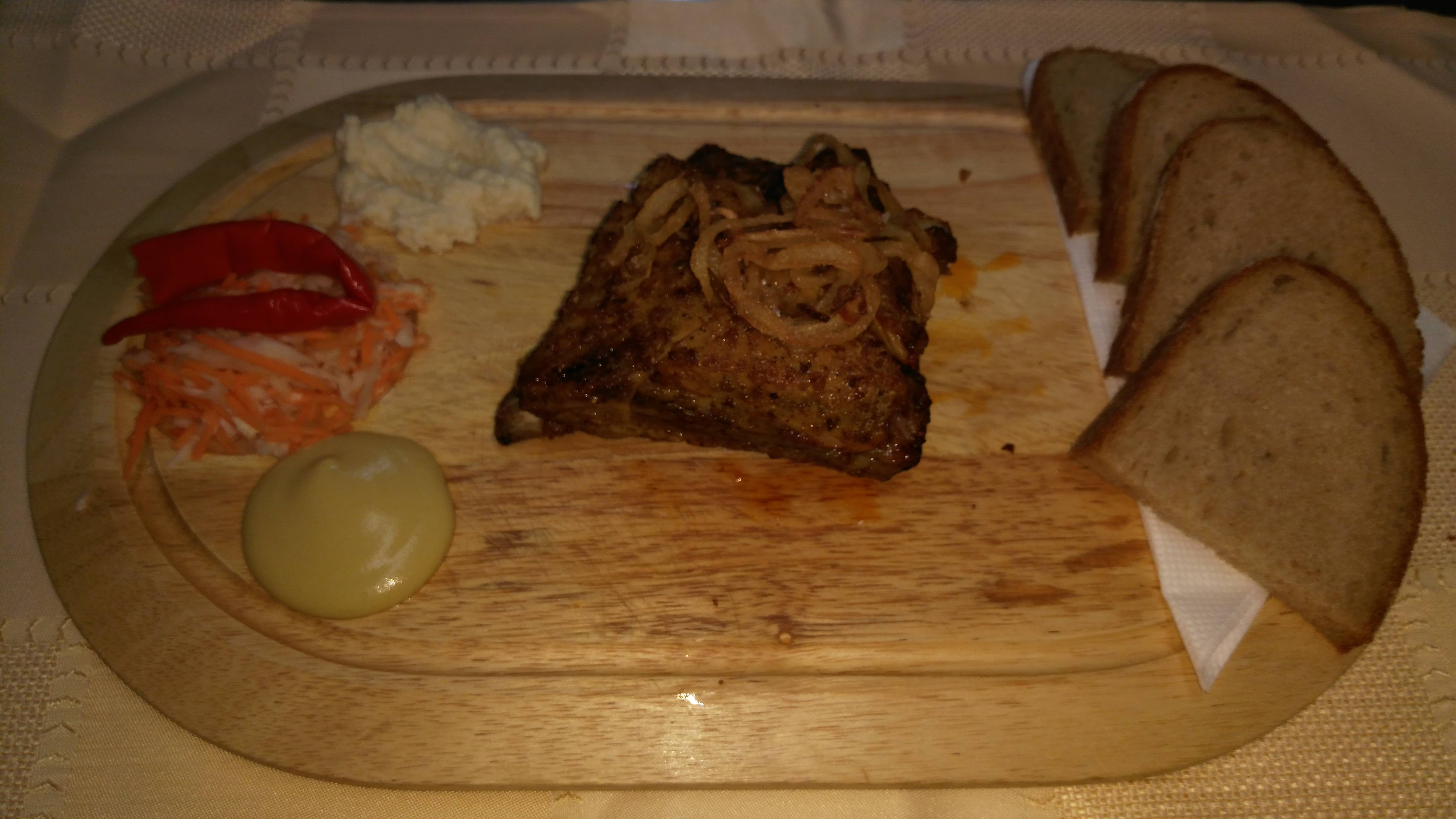 | Dania 229 z musztardą, chrzanem, ostrą papryką i pieczarkami, 2 szt.pieczywo 325 na życzenie gości. Ingredience servírované k tataráku: czosnk,cibule,hořčice,chilli, worcestrová omáčka,sojová omáčka,syrový žloudek |